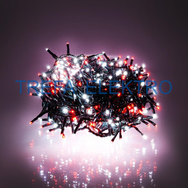 Vánoční řetěz - ježek 600LED Časovač: 6/18 h Celková délka kabelu: 16 m Délka osvětleného kabelu: 11 m Délka přívodní šňůry: 5 m Počet LED: 600 Barva světla: kombinace červená a studená bílá Pro vnitřní i venkovní použití Krytí: IP 44